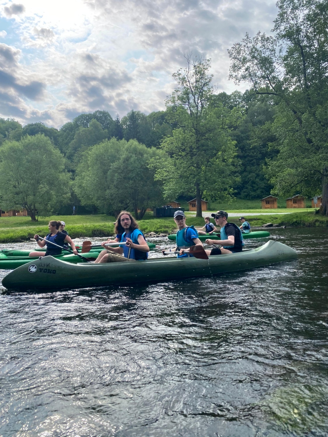 V tomto roce jsme měli malou premiéru. Abychom se vyhnuli zácpám na jezech v Českém Krumlově, kde se čeká i hodinu na sjetí jezu, změnili jsme pořadí sjížděných etap. První den jsme vyjeli ze Zlaté Koruny a jeli do Boršova, kde jsme doposud vodácký výcvik končili. Přestože tato etapa patří k těm delším a letos díky nízkému stavu vody i k náročnějším, zvládli ji studenti bez problémů. Následující etapy jsme pak jeli jako obvykle: Vyšší Brod – Rožmberk, Rožmberk – Český Krumlov a výcvik jsme ukončili ve Zlaté Koruně, ze které jsme vyjížděli. Tato změna se nám velmi osvědčila a Českým Krumlovem jsme projeli naprosto plynule.