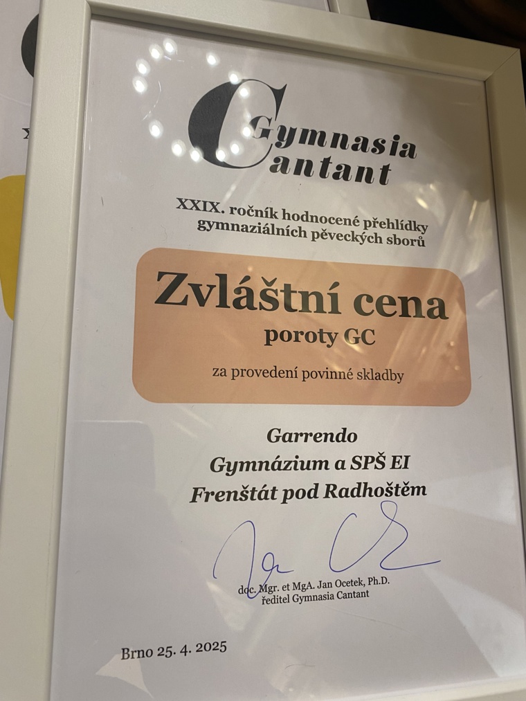 Podpora všech fanoušků Garrenda se projevila, pěvecký sbor si odváží ocenění odborné poroty - umístění ve zlatém pásmu a zvláštní ocenění za provedení povinné skladby Jiřího Pospíšila s názvem Pošlu ti psaníčko.